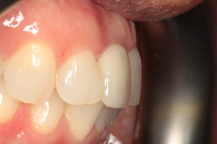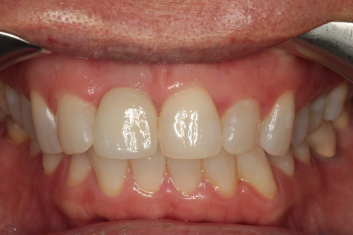 Dopo l’intervento di implantologia, il nuovo incisivo su impianto si integra perfettamente per forma, colore e funzione. Il sorriso risulta naturale, armonico e completamente riabilitato.